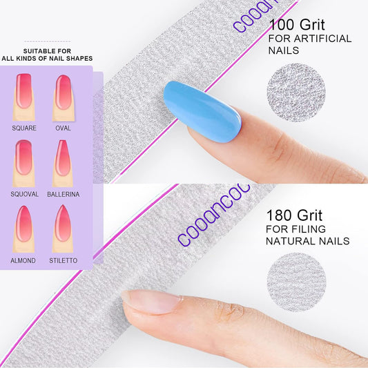 Cooancoco 5PCS Nail File Professional Nail Files Reusable Double Sided Emery Board(100/180 Grit) Nail Styling Tools for Home and Salon Use Christmas Gifts for Women